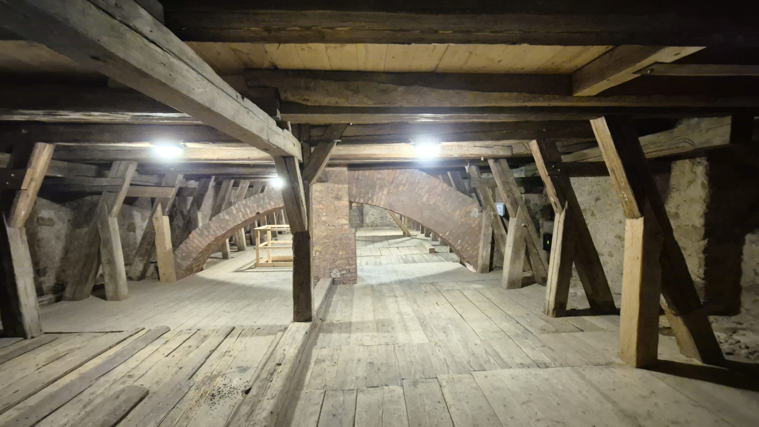 Der Wohnturm, ältester und höchster Bau des Ensembles, wurde 1384 – 1408 errichtet, die Tannen, aus denen das bis heute erhaltene Dach gezimmert ist, 1398 geschlagen.